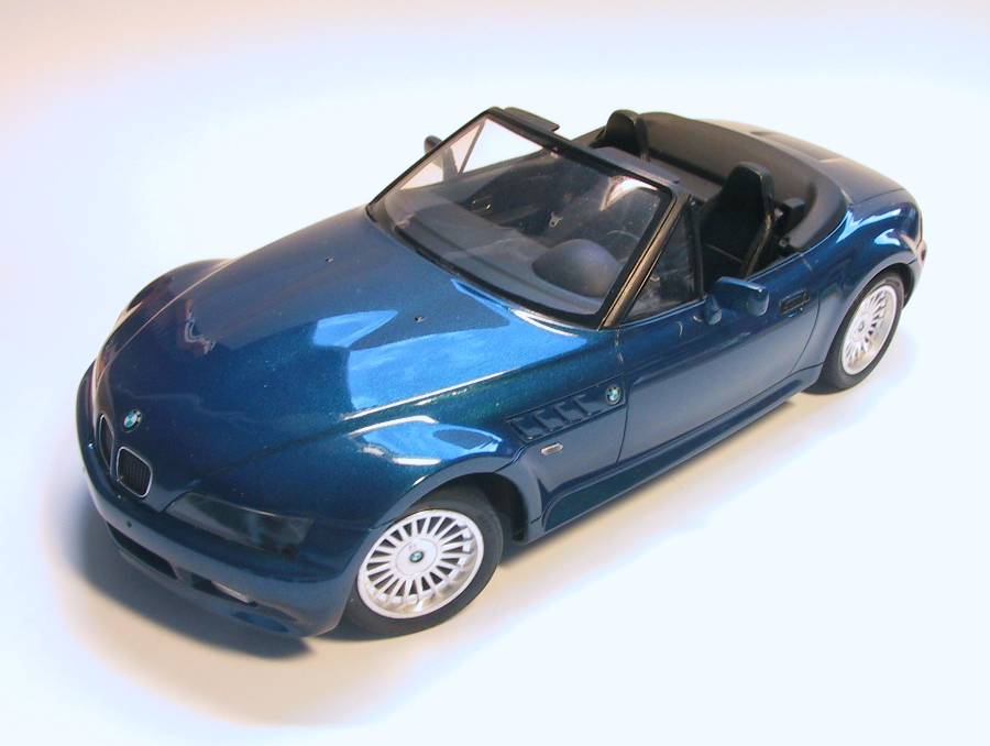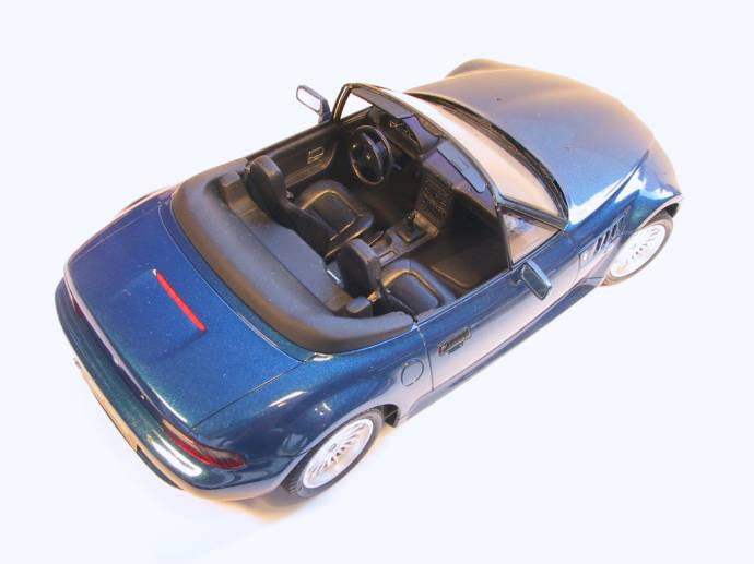 This Tamiya BMW Z3 was built pretty much straight from the box. Only changes were wheels taken from Fujimi's Alpina 5-series kit, exhaust pipe tips made from polished aluminum tube and seatbelts with etched metal buckles. Side mirrors had to be changed to Fujimi Porsche 911 mirrors, because I lost the original left side mirror into drain while washing the parts for painting.